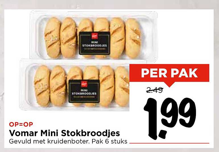 Normaal gesproken kosten de Vomar Mini Stokbroodjes €2,49, maar met deze aanbieding betaal je slechts €1,99 per pak! Een korting van maar liefst €0,50 maakt dit de perfecte gelegenheid om aan te slaan. Waarom meer betalen als je nu kunt genieten van deze smakelijke snack voor minder?