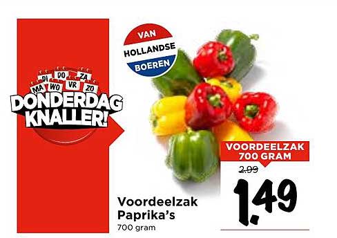 Bekijk de Voordeelzak Paprika’s aanbieding bij Vomar! Deze fantastische aanbieding is nu beschikbaar in de nieuwste Vomar folder. Profiteer van deze kans en bespaar flink op je aankoop.
