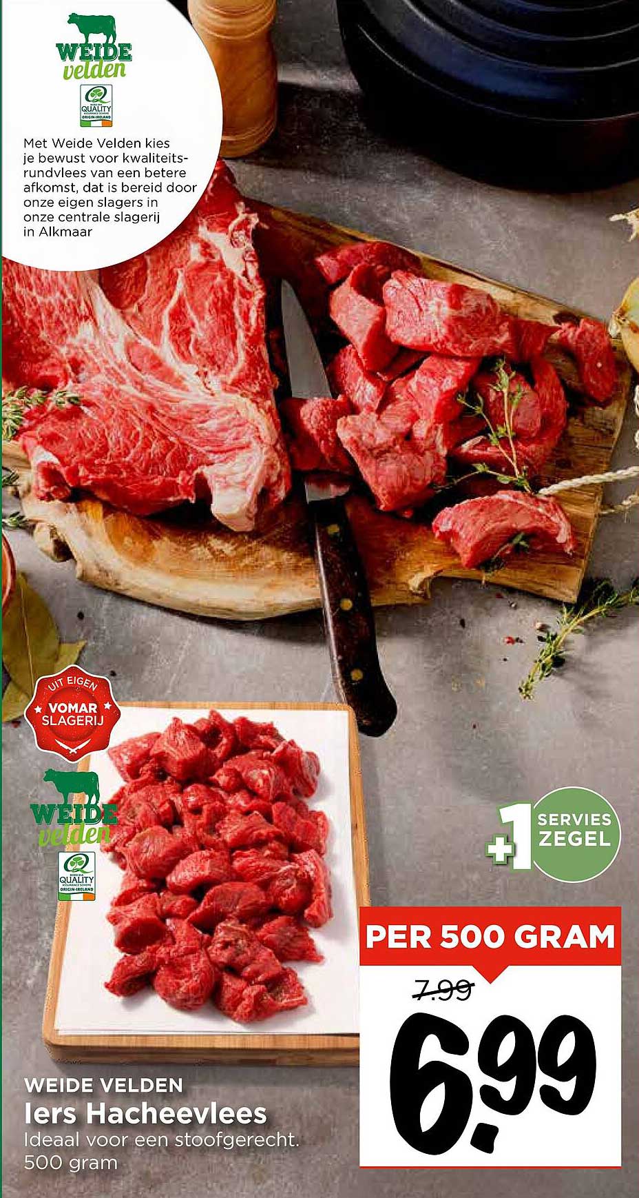 Bekijk de Weide Velden Iers Hachee-Vlees aanbieding bij Vomar! Deze fantastische aanbieding is nu beschikbaar in de nieuwste Vomar folder. Profiteer van deze kans en bespaar flink op je aankoop.