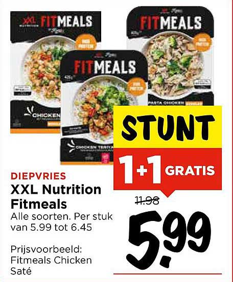 Bekijk nu de XXL Nutrition Fitmeals aanbieding in de Vomar folder. Deze aanbieding is geldig van 23-07-2025 tot en met 26-07-2025.
