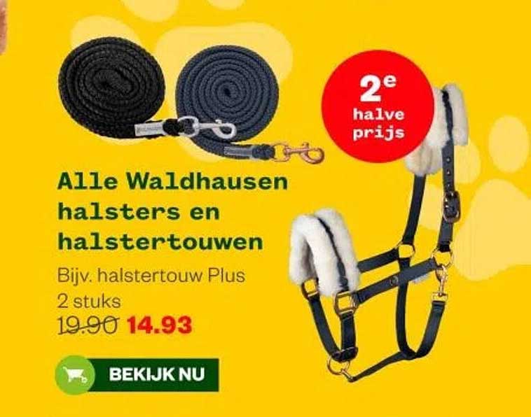 Ben je op zoek naar hoogwaardige halsters en halstertouwen voor jouw geliefde paard? Zoek niet verder! Deze aanbieding van Welkoop biedt je de kans om de beste producten van Waldhausen aan te schaffen, waarbij je profiteert van een aantrekkelijke korting. Dit is dé gelegenheid om te investeren in de veiligheid en het comfort van je paard, terwijl je ook nog eens geld bespaart.