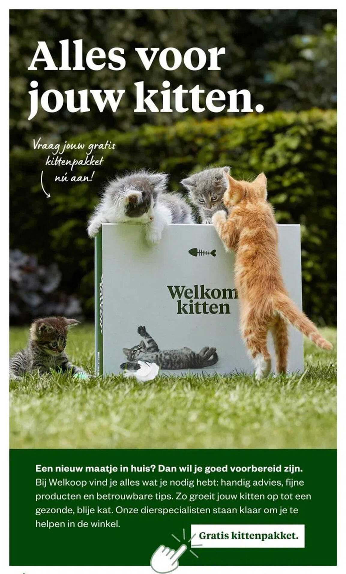 Wil je meer weten over het kittenpakket en andere aanbod van Welkoop? Bezoek dan snel hier en ontdek alles wat je nodig hebt voor jouw kitten. Daarnaast vind je in de folder diverse aanbiedingen die je niet wilt missen!