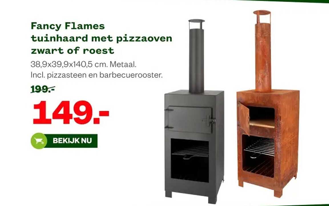 Bekijk nu de Fancy Flames tuinhaard met pizzaoven zwart of roest aanbieding in de Welkoop folder. Deze aanbieding is geldig van 20-10-2025 tot en met 09-11-2025.