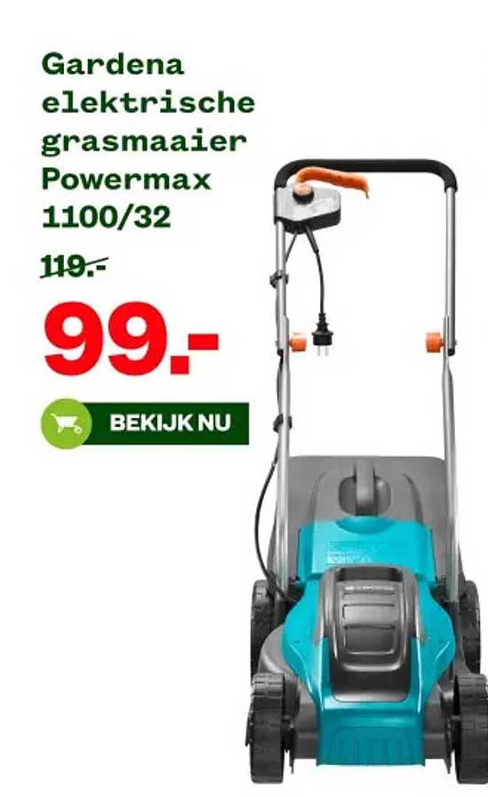 Bekijk nu de Gardena elektrische grasmaaier Powermax 1100/32 aanbieding in de Welkoop folder. Deze aanbieding is geldig van 14-04-2025 tot en met 27-04-2025.