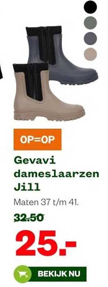 Bekijk nu de Gevaavi dameslaarzen Jill aanbieding in de Welkoop folder. Deze aanbieding is geldig van 03-11-2025 tot en met 09-11-2025.