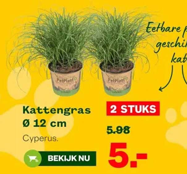 Bekijk nu de Kattengras Ø 12 cm aanbieding in de Welkoop folder. Deze aanbieding is geldig van 22-09-2025 tot en met 05-10-2025.