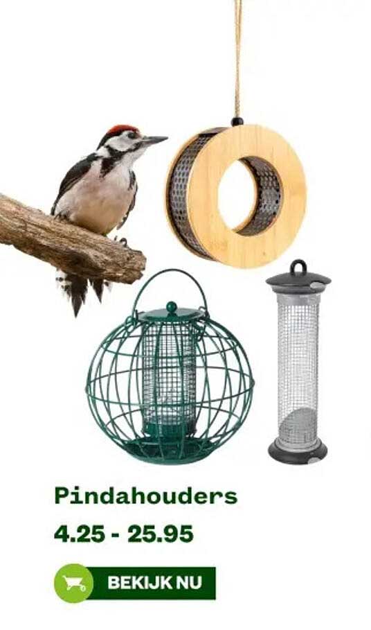 Ben jij een echte vogelaar of gewoon iemand die het leuk vindt om de natuur om zich heen te bewonderen? Dan zijn de pindahouders in de aanbieding op deze pagina absoluut iets voor jou! Deze prachtige accessoires maken het mogelijk om verschillende soorten vogels naar jouw tuin te lokken. Met de juiste pindahouder maak je van jouw tuin een waar vogelparadijs.