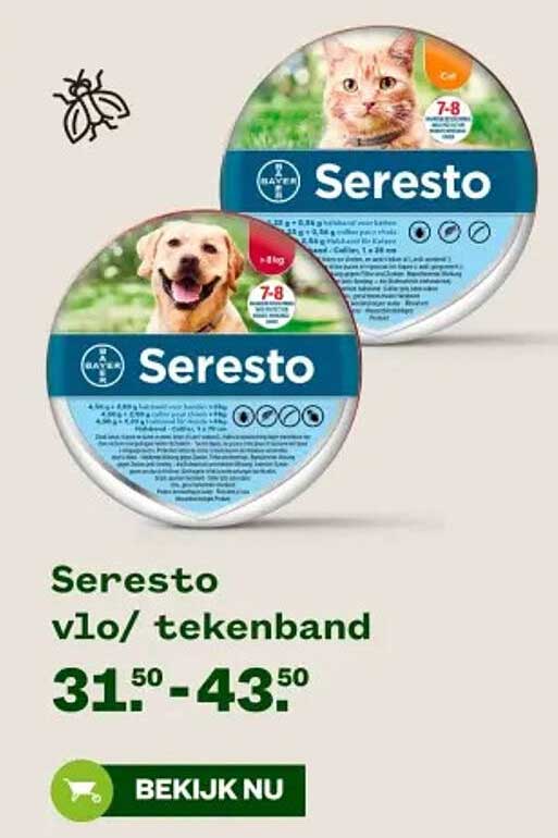 Ben je op zoek naar een effectieve manier om je huisdier te beschermen tegen vlooien en teken? Dan is de Seresto vlo- en tekenband de perfecte oplossing! Deze aanbieding, die geldig is van 2025-08-04 tot en met 2025-08-24, biedt je de kans om je trouwe viervoeter of schattige kitten te voorzien van hoogwaardige bescherming tegen parasieten, terwijl je ook geld bespaart.