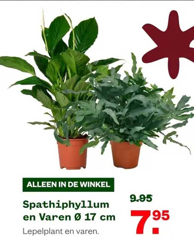 Bekijk nu de Spathiphyllum en Varen Ø 17 cm aanbieding in de Welkoop folder. Deze aanbieding is geldig van 06-10-2025 tot en met 19-10-2025.