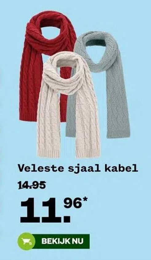Bekijk nu de Veleste sjaal kabel aanbieding in de Welkoop folder. Deze aanbieding is geldig van 03-11-2025 tot en met 09-11-2025.