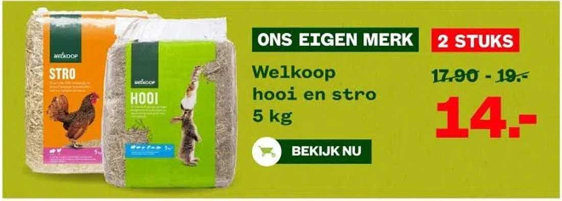 Ben je op zoek naar een kwalitatieve oplossing voor je huisdieren of knaagdieren? Dan is de aanbieding van Welkoop perfect voor jou! Deze aanbieding omvat 2 stuks van ons eigen merk hooi en stro van 5 kg voor slechts €14,-. Een geweldige deal waarin je niet alleen voor jouw dier zorgt, maar ook voor je portemonnee.