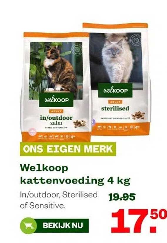 Als katteneigenaar weet je dat het belangrijk is om je huisdier te voorzien van hoogwaardige voeding. De Welkoop kattenvoeding van 4 kg, beschikbaar in de smaken In/outdoor, Sterilised of Sensitive, biedt een uitstekende keuze voor jouw viervoeter. Deze aanbieding is geldig van 2025-07-21 tot en met 2025-07-27 en geeft je de kans om te besparen op de dagelijkse voeding van je kat.