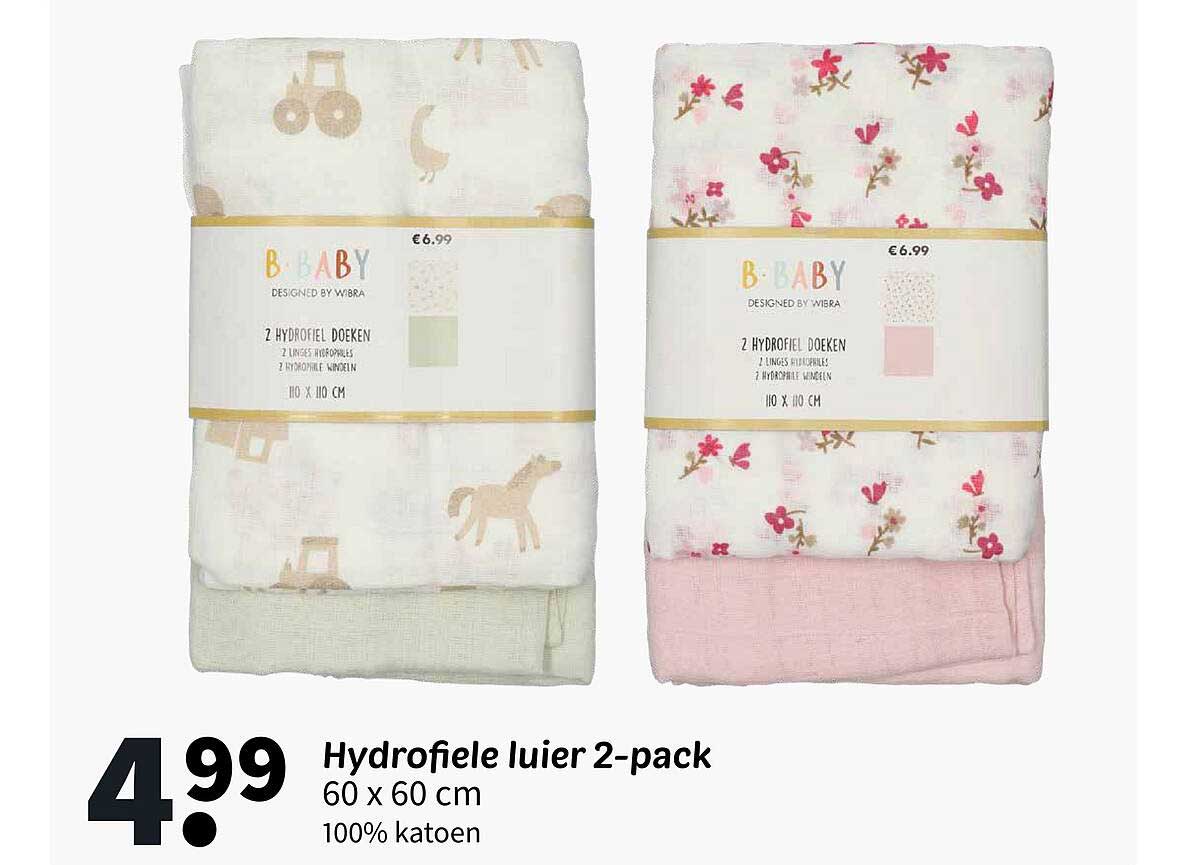Bekijk nu de Hydrofiele luier 2-pack aanbieding in de Wibra folder. Deze aanbieding is geldig van 06-06-2025 tot en met 19-06-2025.