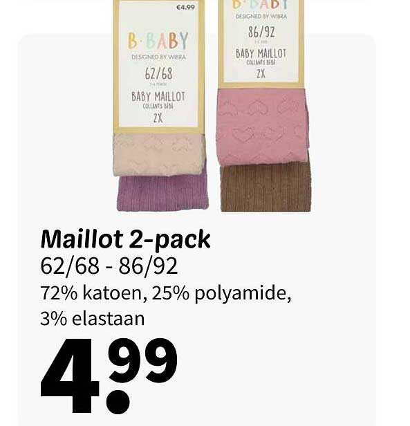 Ben je op zoek naar comfortabele en schattige maillots voor jouw kleintje? Kijk dan zeker hier! Deze aanbieding gaat over de stijlvolle en praktisch 2-pack maillots van B-Baby, speciaal ontworpen door Wibra. Deze maillots zijn perfect voor baby's in de maten 62/68 en 86/92 en bieden een geweldige combinatie van comfort en stijl.