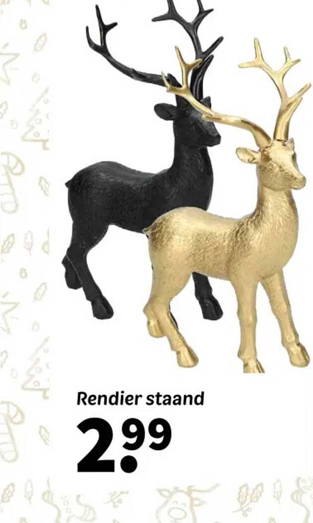 Met een scherpe prijs van slechts €2,99, is deze rendier stand een koopje! De normale prijs ligt vaak hoger, dus grijp dit moment en haal deze mooie decoratie in huis. Hiermee creëer je niet alleen een feestelijke ambiance, maar bespaar je ook een hoop geld.