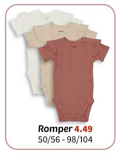 Bekijk de Romper 4.49 aanbieding bij Wibra! Deze fantastische aanbieding is nu beschikbaar in de nieuwste Wibra folder. Profiteer van deze kans en bespaar flink op je aankoop.