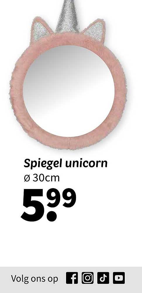 Bekijk de Spiegel Unicorn aanbieding bij Wibra! Deze fantastische aanbieding is nu beschikbaar in de nieuwste Wibra folder. Profiteer van deze kans en bespaar flink op je aankoop.