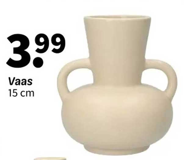 Ontdek de geweldige Vaas aanbieding in de nieuwste Wibra folder. Naast deze aanbieding vind je nog veel meer aantrekkelijke kortingen. Je kunt de Vaas eenvoudig online bestellen via de Wibra website of kopen in een winkel bij jou in de buurt.