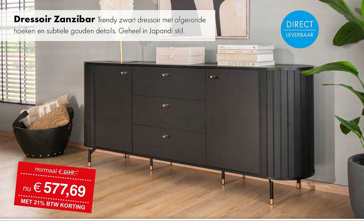 Bekijk nu de Dressoir Zanzibar aanbieding in de Woonsquare folder. Deze aanbieding is geldig van 22-09-2025 tot en met 27-09-2025.