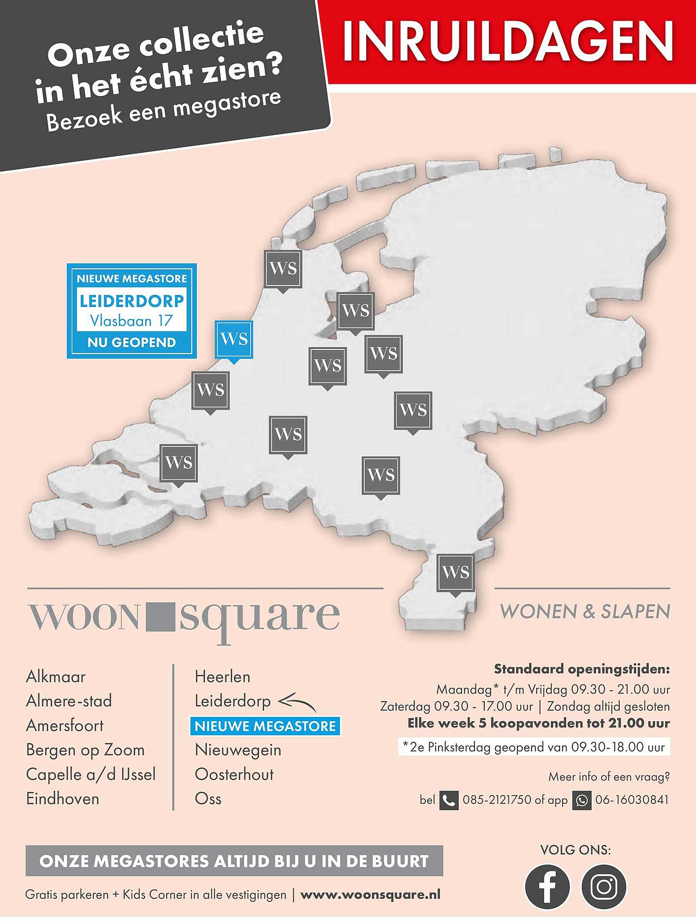 De INRUILDAGEN van Woonsquare bieden unieke voordelen. Je krijgt de kans om in te ruilen, wat betekent dat je je oude meubels kunt inbrengen en hiervoor voordeel kunt krijgen op je nieuwe aankopen. Bovendien is onze nieuwe megastore in Leiderdorp nu geopend, wat zorgt voor een uitgebreide keuze aan producten waar je meteen van kunt profiteren!