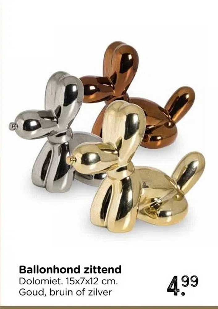 Voor slechts €4,99 is deze ballonhond zittend een fantastische deal. De normale prijs voor dergelijke decoratieve items ligt vaak veel hoger, maar dankzij deze aanbieding kun je nu een premium product in huis halen voor een zeer betaalbare prijs. Dit is een kans die je niet wilt laten liggen!