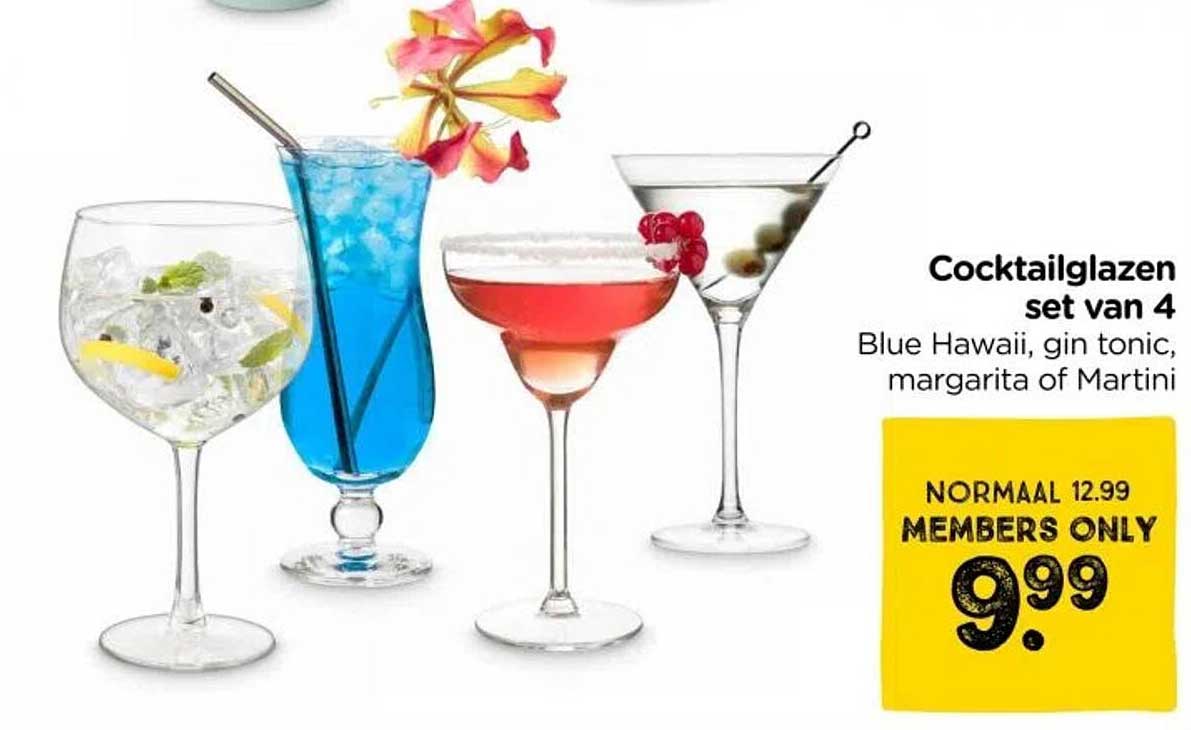 Deze set van vier cocktailglazen is nu beschikbaar voor slechts €9,99, terwijl de normale prijs €12,99 is. Dit betekent dat je nu profiteert van een geweldige korting! Wacht niet te lang, want deze aanbieding is geldig van 10 augustus 2025 tot en met 16 augustus 2025. Dit is jouw kans om te besparen en je verzameling te vergroten!