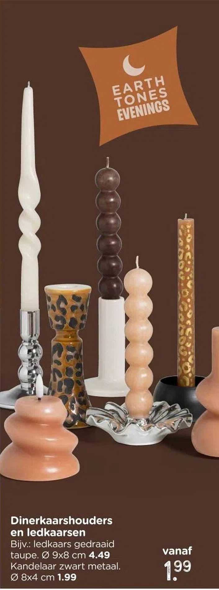 De aanbieding bevat onder andere gedraaide taupe ledkaarsen met een diameter van 9 cm en een hoogte van 8 cm, die je voor slechts €4,49 kunt aanschaffen. Daarnaast is er een elegante zwarte metalen kandelaar (Ø 8 cm) beschikbaar voor maar €1,99. Deze producten zijn vervaardigd uit hoogwaardige materialen, waardoor ze duurzaam en veilig zijn in gebruik.