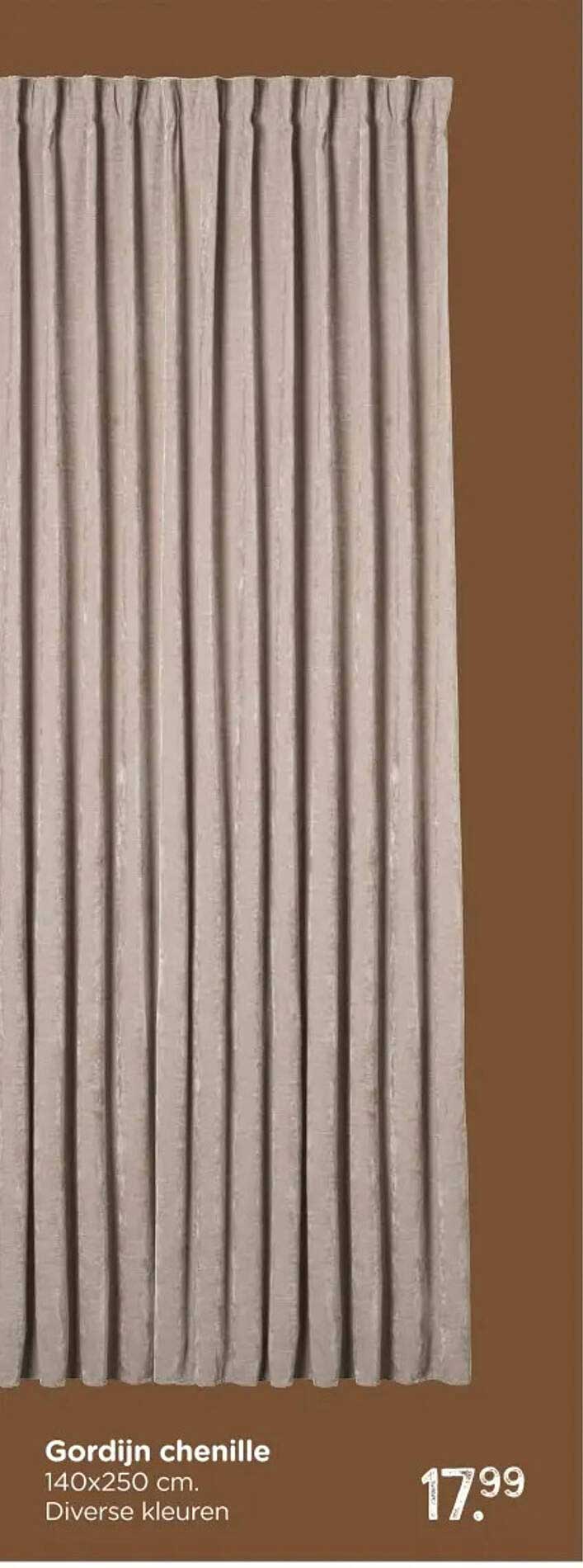 Bekijk nu de Gordijn chenille 140x250 cm. Diverse kleuren aanbieding in de Xenos folder. Deze aanbieding is geldig van 03-10-2025 tot en met 18-10-2025.