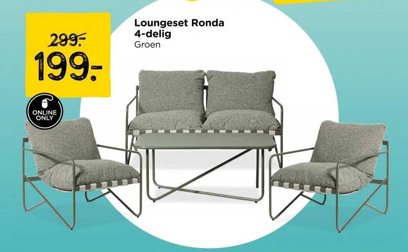 Bekijk nu de Loungeset Ronda 4-delig Groen aanbieding in de Xenos folder. Deze aanbieding is geldig van 10-08-2025 tot en met 16-08-2025.