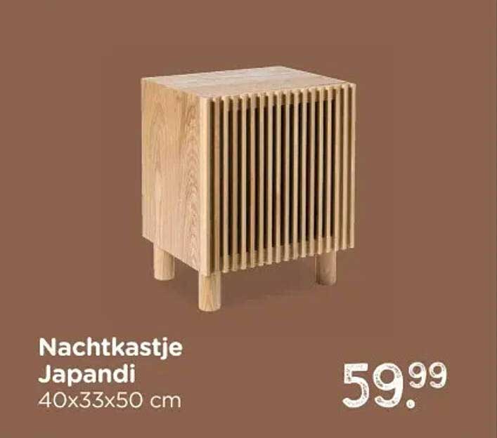 Normaal gesproken zou je voor een dergelijke kwaliteit en design meer betalen, maar nu is het Nachtkastje Japandi beschikbaar voor €59,99. Dit betekent dat je niet alleen een prachtig meubelstuk toevoegt aan je huis, maar ook binnen je budget blijft. Mis deze kans niet!