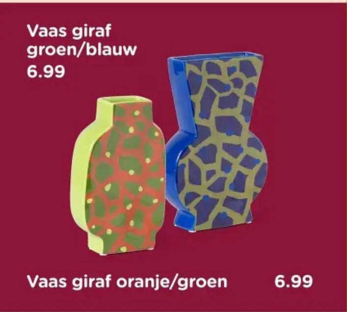 Bekijk nu de Vaas giraf groen/blauw 6.99 aanbieding in de Xenos folder. Deze aanbieding is geldig van 03-10-2025 tot en met 18-10-2025.