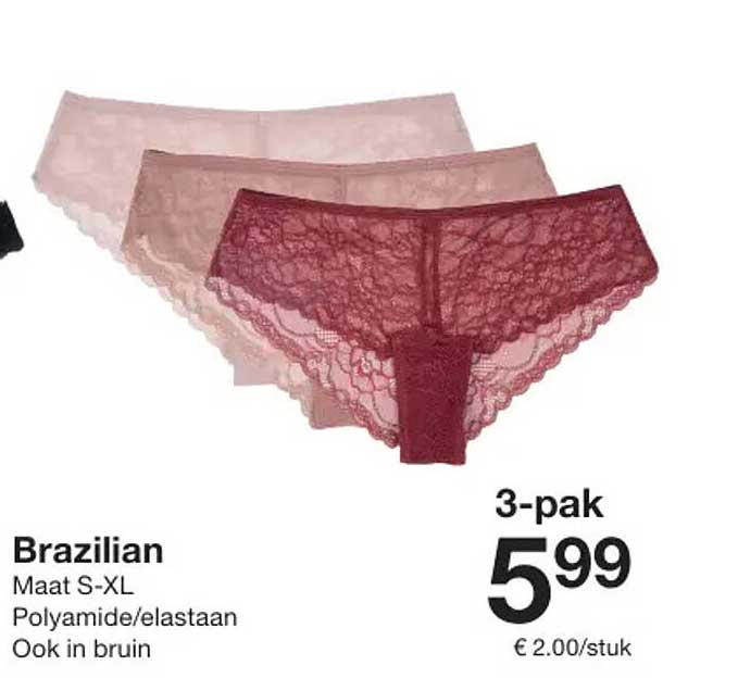 Bekijk nu de Brazilian 3-pak aanbieding in de Zeeman folder. Deze aanbieding is geldig van 13-09-2025 tot en met 26-09-2025.