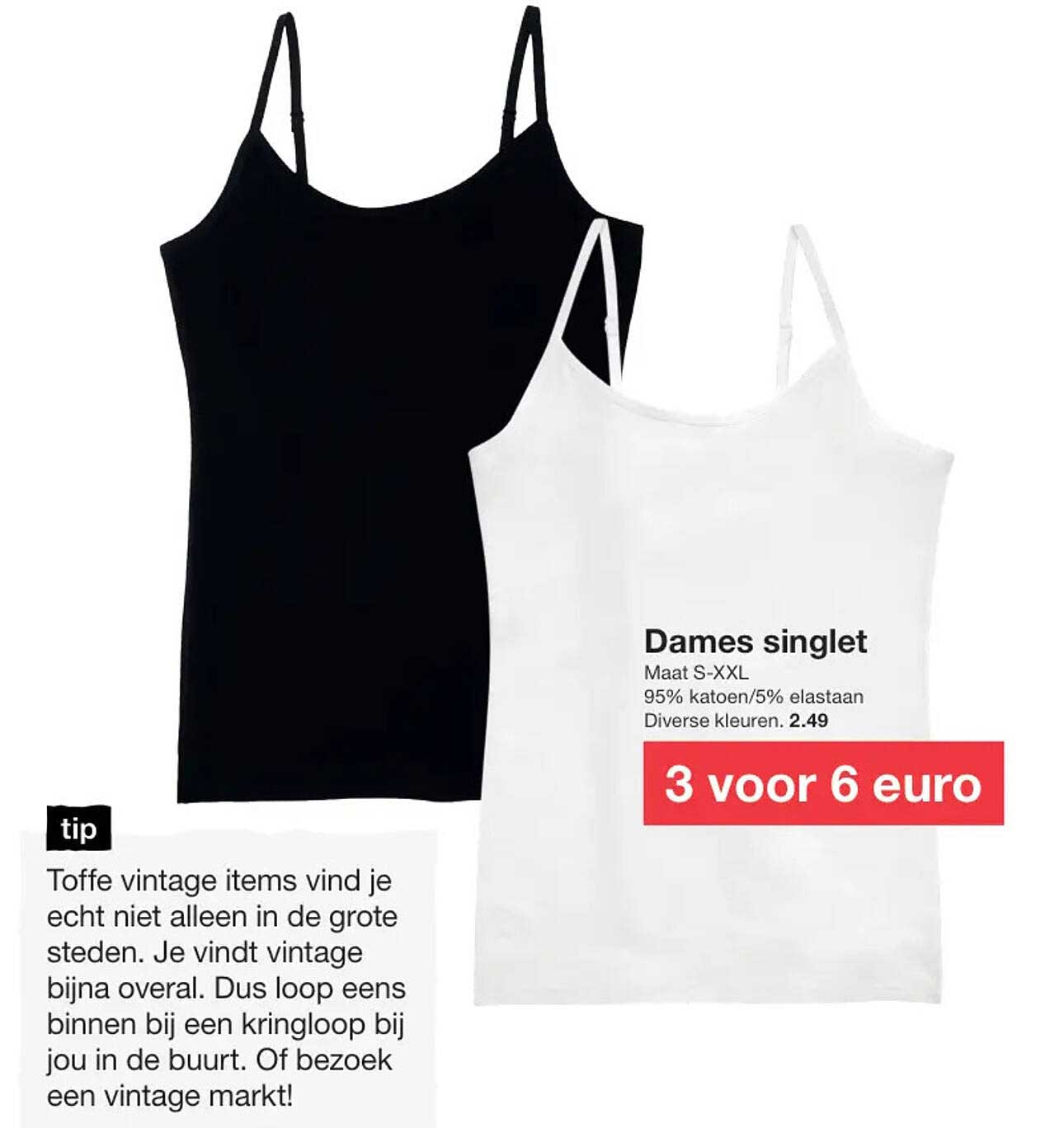 Bekijk de Dames Singlet aanbieding bij Zeeman! Deze fantastische aanbieding is nu beschikbaar in de nieuwste Zeeman folder. Profiteer van deze kans en bespaar flink op je aankoop.