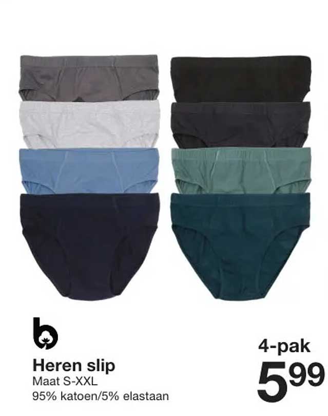 Bekijk de Heren Slip aanbieding bij Zeeman! Deze fantastische aanbieding is nu beschikbaar in de nieuwste Zeeman folder. Profiteer van deze kans en bespaar flink op je aankoop.