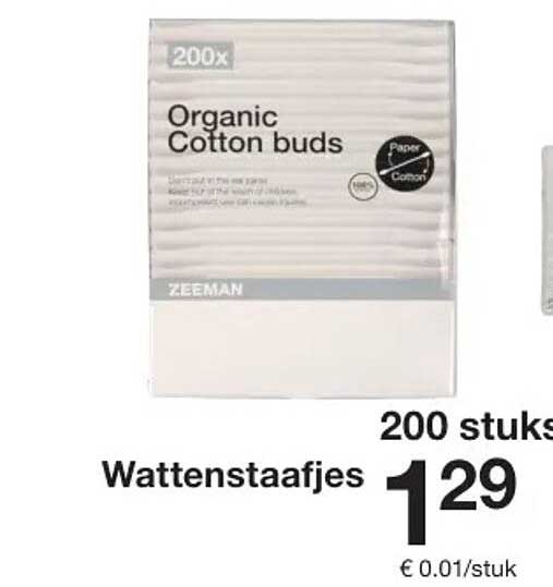Op zoek naar een handige en duurzame oplossing voor al je schoonheids- en hygiënebehoeften? Kijk dan niet verder! Deze aanbieding van Zeeman biedt je een pak van 200 organische wattenstaafjes voor een ongelooflijke prijs. Perfect voor het reinigen van je oren, het aanbrengen van make-up of zelfs voor knutselprojecten. Met een prijs van slechts €1,29 heb je alles wat je nodig hebt binnen handbereik!